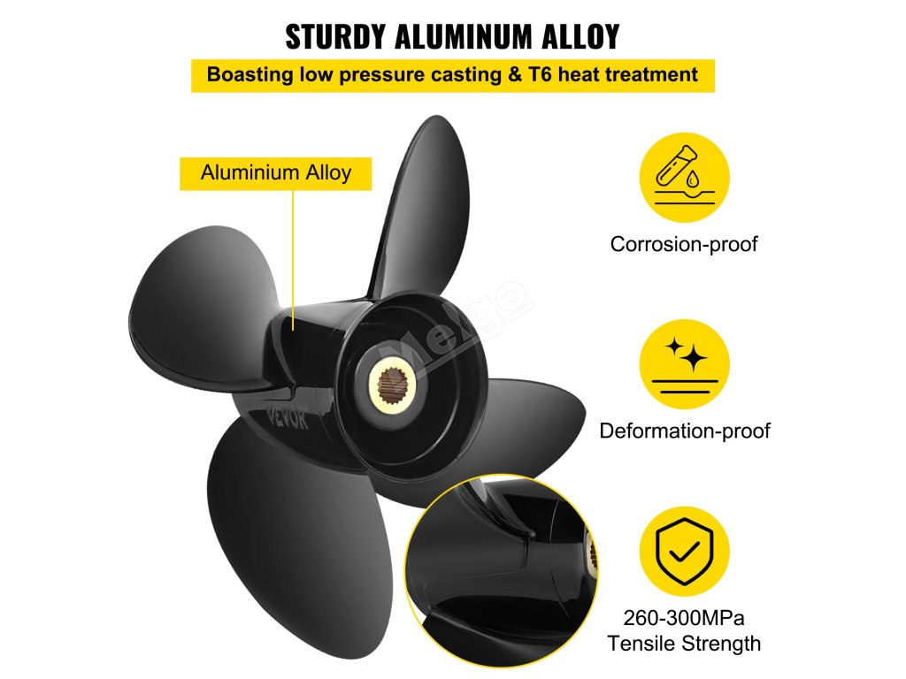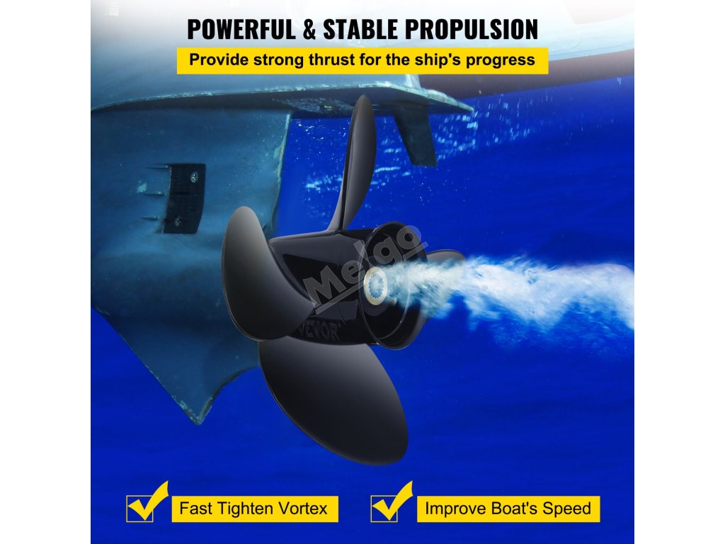 Tato lodní vrtule může přímo nahradit vrtuli OEM 3587522. Její malý, kompaktní design nezpůsobí vaší lodi žádné komplikace a zajistí spolehlivý a bezpečný provoz. Kromě toho je lehká a velmi hladká, což jí umožňuje prořezávat vodu.
