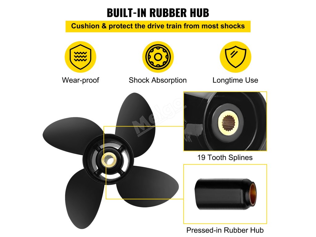 Kromě 19zubé rampy je vrtule uprostřed opatřena gumovým rubem, který má tlumit a chránit převodovku motoru a hnací hřídel.