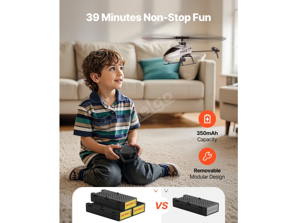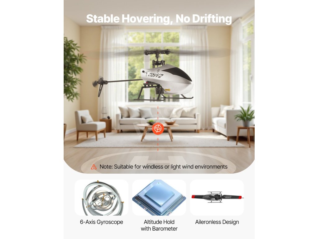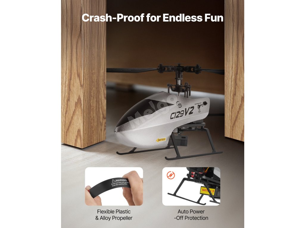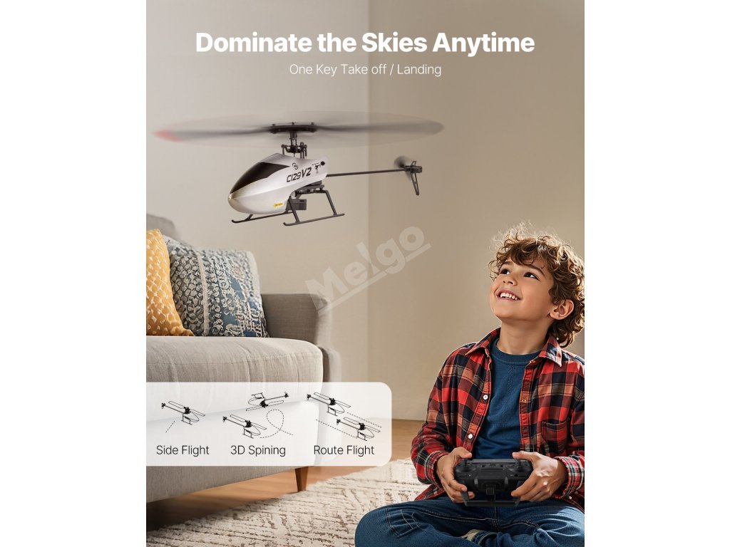 Díky flexibilní konstrukci a šestiosému gyroskopu nabízí tento dálkově ovládaný vrtulník 3D rotační kousky, které dětem umožňují provádět 360° přemety nebo spirálové stoupání a klesání a přinášejí jim tak vzrušující zážitek z letu.