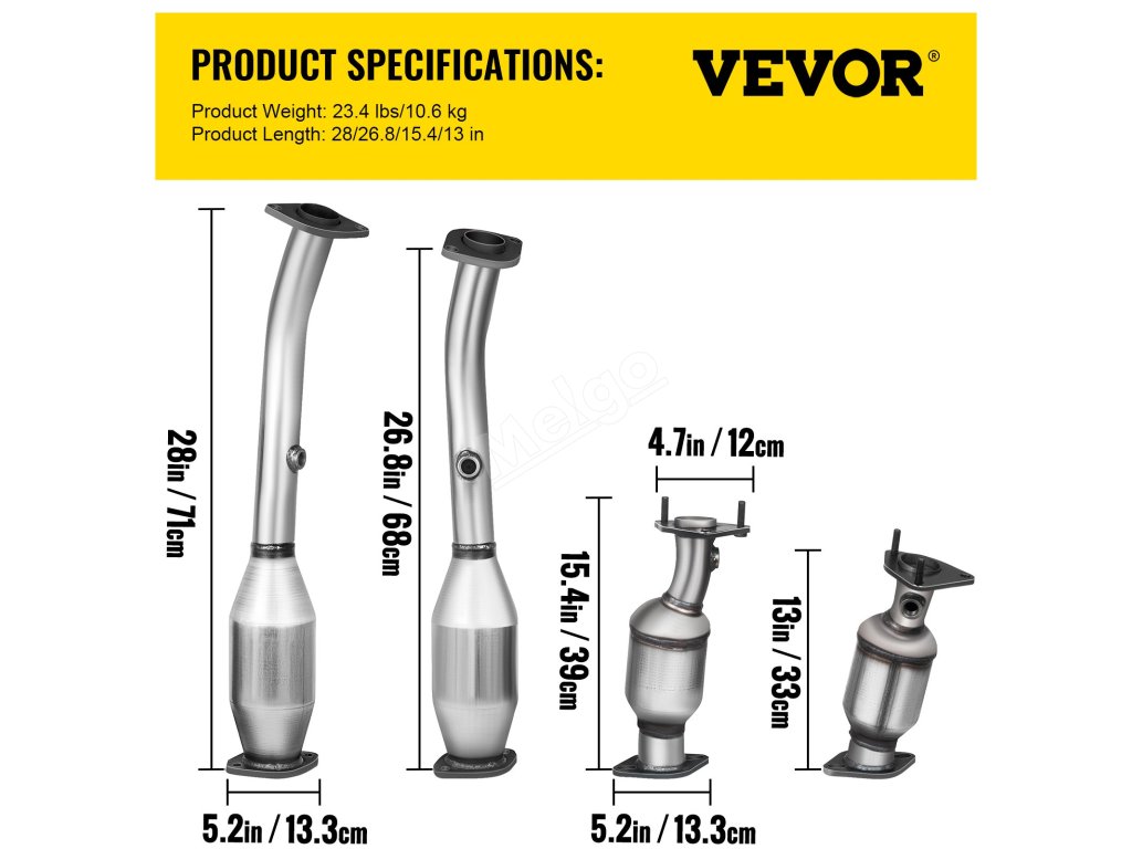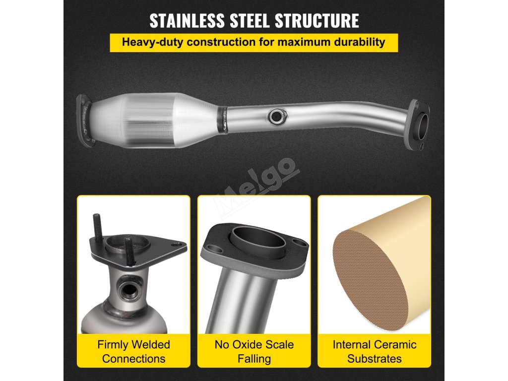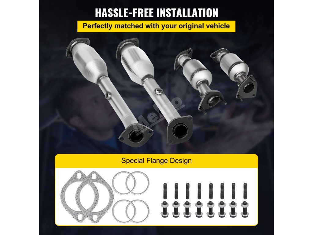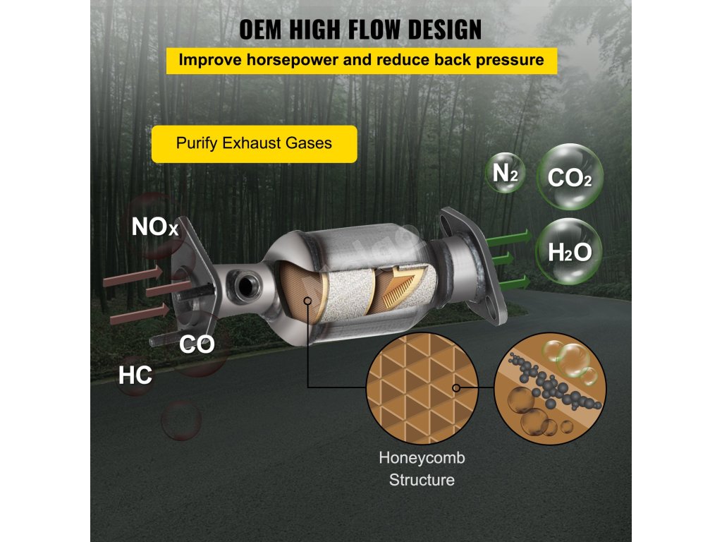 - Přímá montáž měniče; vozidla s federálními a kalifornskými emisemi. Není legální pro prodej vozidel s licencí v Kalifornii. Na měniče, které a zmodrají v důsledku přehřátí, se nevztahuje záruka. Tyto konvertory nelze prodávat ani zasílat do státu Kalifornie.