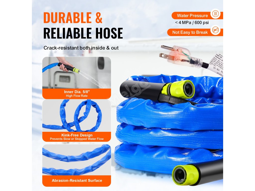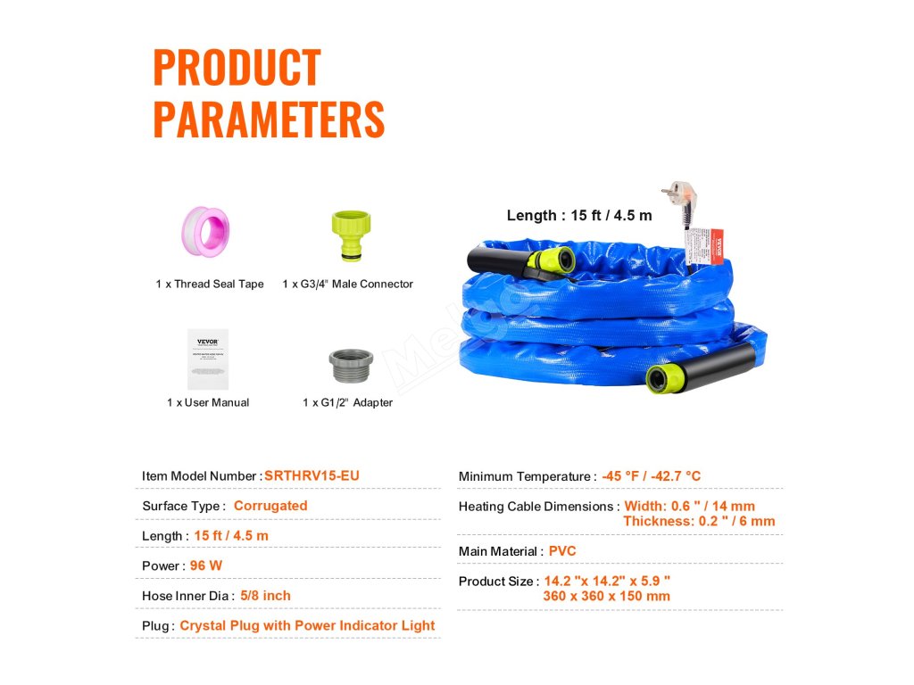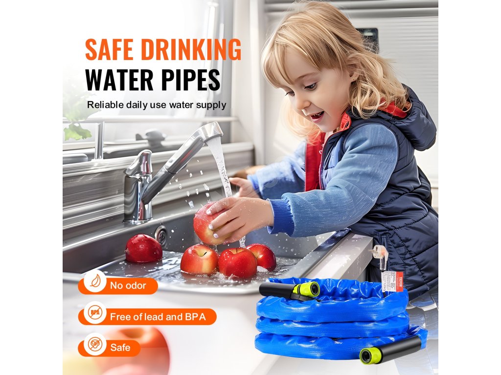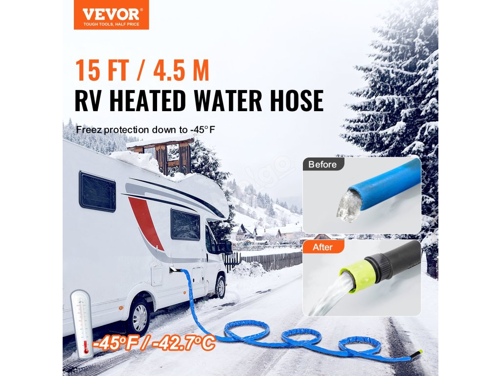 Během zimních nocí ve většině regionů běžné hadice kvůli nízkým teplotám zamrzají. S vyhřívanou hadicí na vodu VEVOR pro obytné vozy si můžete při kempování v obytném voze užívat běžného používání vody i při teplotách až -45 °C.