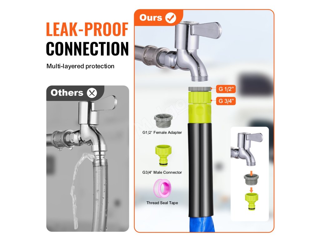 Vnitřní hadice z PVC je bezpečná pro pitnou vodu, neobsahuje olovo ani BPA a udržuje vodu čistou pro pití, koupání i zalévání rostlin.