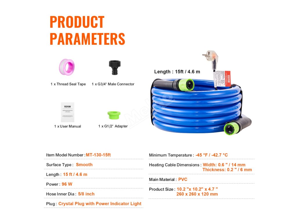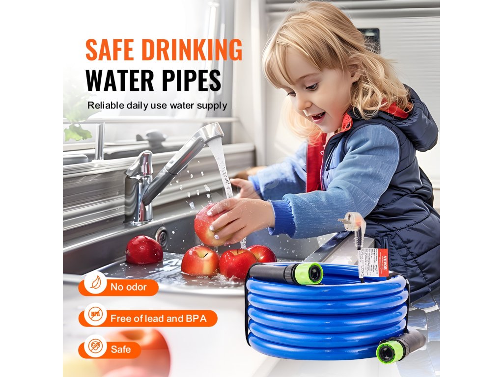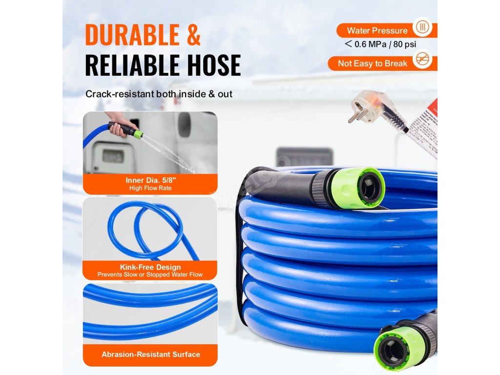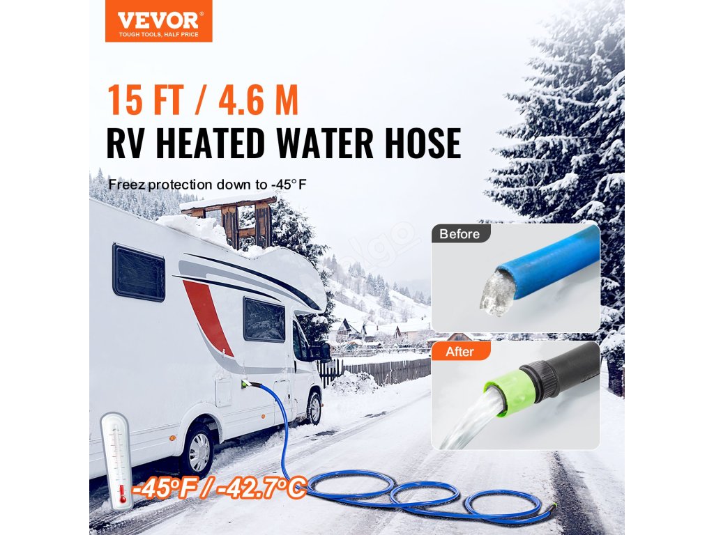 Během zimních nocí ve většině regionů běžné hadice kvůli nízkým teplotám zamrzají. S vyhřívanou hadicí na vodu VEVOR pro obytné vozy si můžete při kempování v obytném voze užívat běžného používání vody i při teplotách až -45 °C.
