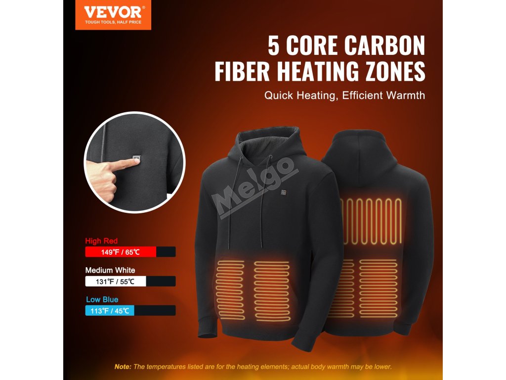 Táto vyhrievaná mikina využíva pokročilú technológiu vyhrievania pomocou uhlíkových vlákien, ktorá zabezpečuje rýchle zahriatie v chladnom prostredí. Jej jedinečných 5 vyhrievacích zón je umiestnených v kľúčových oblastiach tela, aby bolo teplo vyvážené. Okrem toho má unisexový strih, vďaka ktorému je nepostrádateľným hrejivým a štýlovým kúskom pri zmene ročných období.
