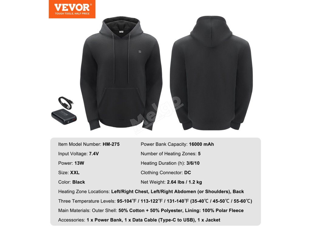 Táto vyhrievaná mikina využíva pokročilú technológiu vyhrievania pomocou uhlíkových vlákien, ktorá zabezpečuje rýchle zahriatie v chladnom prostredí. Jej jedinečných 5 vyhrievacích zón je umiestnených v kľúčových oblastiach tela, aby bolo teplo vyvážené. Okrem toho má unisexový strih, vďaka ktorému je nepostrádateľným hrejivým a štýlovým kúskom pri zmene ročných období.