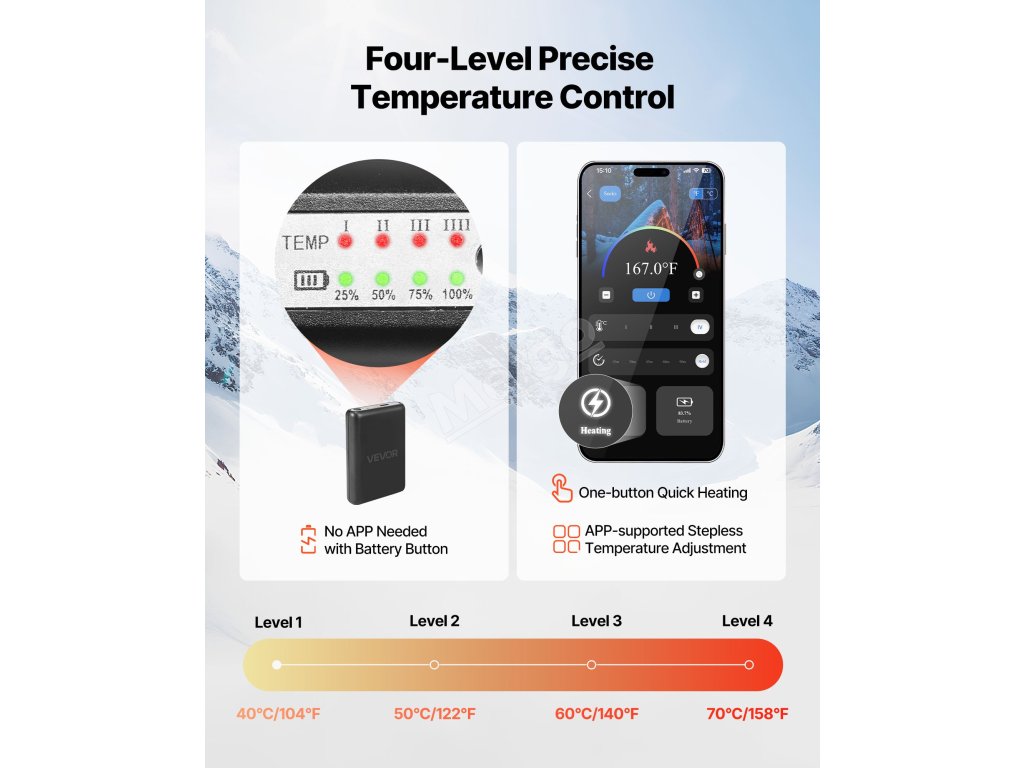 Naše vyhřívané ponožky se čtyřmi stupni vyhřívání jsou ideální pro každého - od mladých dobrodruhů až po seniory -, aby se každý cítil v teple a pohodlí za všech podmínek.