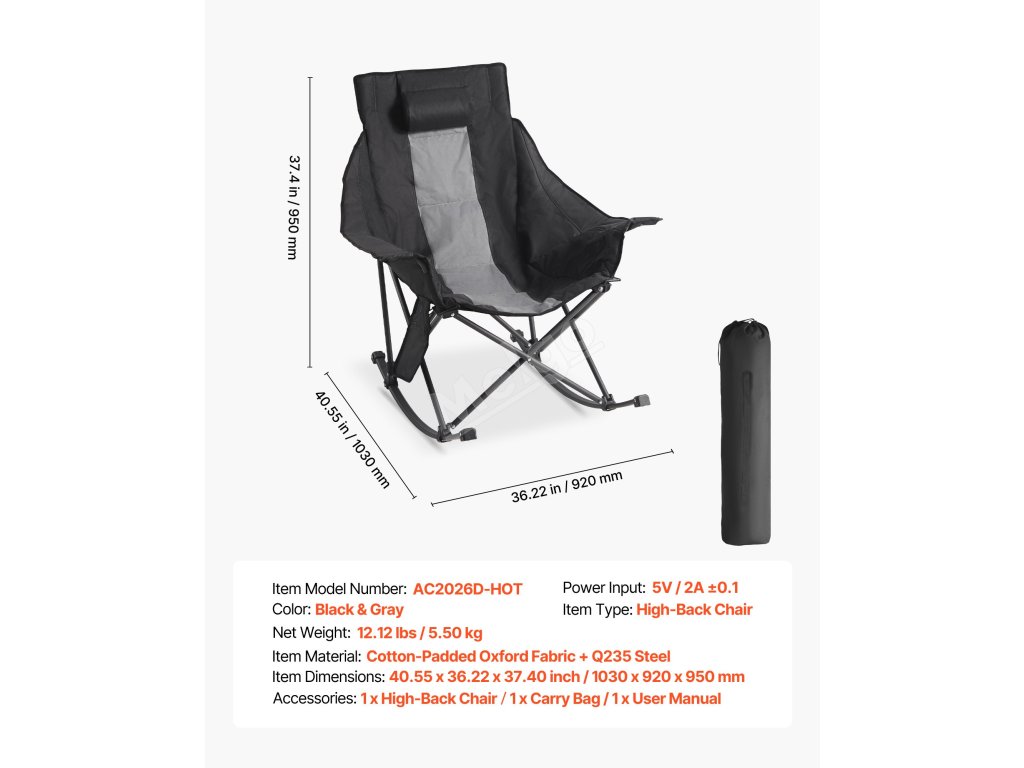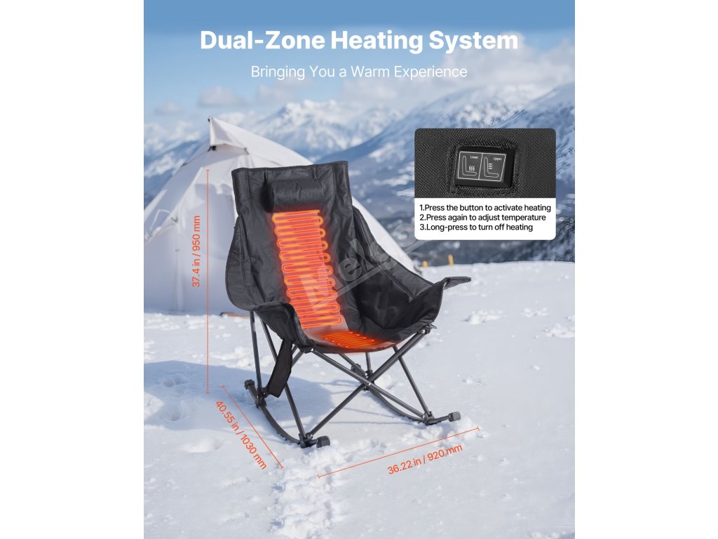 Toto vyhřívané houpací křeslo o rozměrech 40,55 x 36,22 x 37,40 palců poskytuje dlouhotrvající pohodlí při dlouhodobém používání. Dvouzónový vyhřívací systém poskytuje cílené teplo pro opěradlo i sedadlo v chladném počasí. Třípolohové nastavitelné opěradlo pomáhá uvolnit napětí v ramenou, krku a pažích.