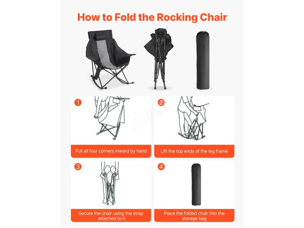 Toto skládací houpací křeslo se dodává s lehkou taškou na přenášení. Ve složeném stavu se do ní křeslo úhledně vejde - uchopte ho jednou rukou a vezměte si ho s sebou, kamkoli si vyžádá pohodlí.