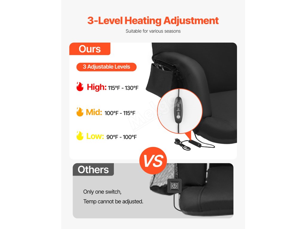 Duální vyhřívání a třístupňová regulace teploty umožňují vyhřívat sedák i opěradlo nebo jen sedák či opěradlo zvlášť, což zajišťuje pohodlí v každém ročním období.