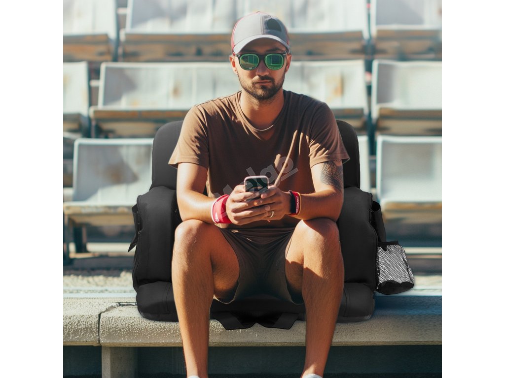 Přenosná sedačka s opěradlem, která se snadno skládá a lze ji přenášet pomocí přiloženého ramenního popruhu. Zabírá minimum místa, takže ji lze snadno uložit do zavazadlového prostoru auta.