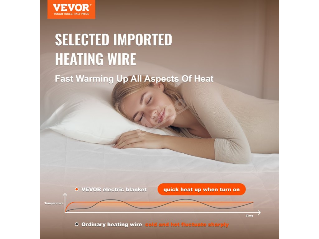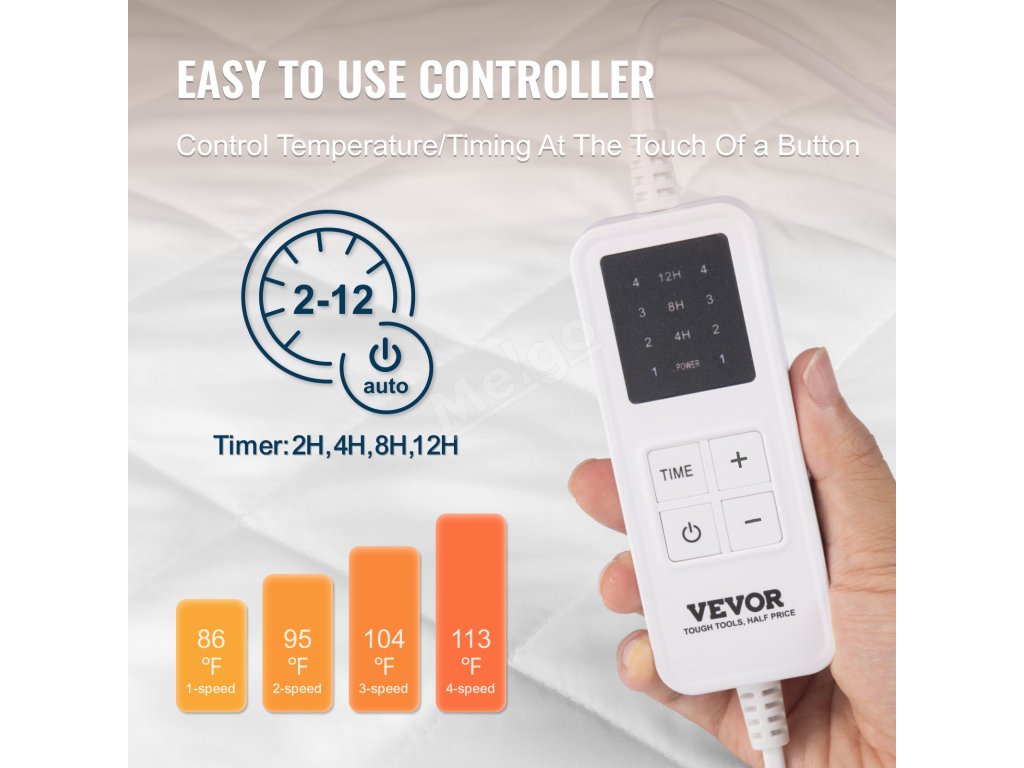 Tato elektrická plachta nabízí funkci nastavení teploty s více rychlostmi, která dokáže uspokojit potřeby různých osob. Mezitím je také vybavena funkcí automatického vypnutí, která umožňuje nastavit automatické vypnutí podle vlastní doby práce a odpočinku.