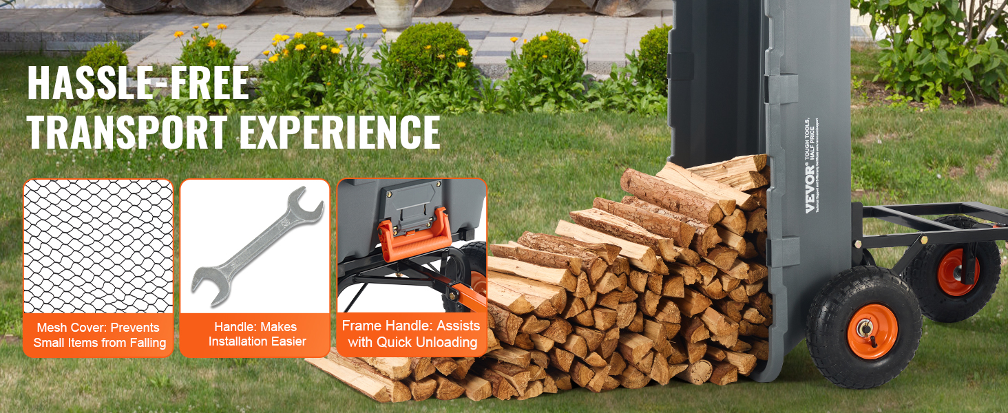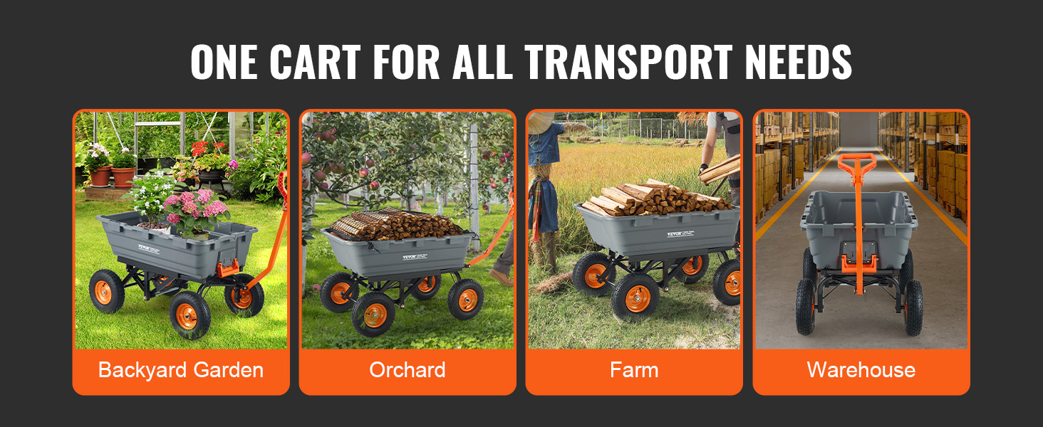 Tento sklápěč splní všechny vaše přepravní potřeby - od zkrášlování zahrad po údržbu sadů, sklizeň plodin na farmách nebo řízení skladové logistiky. Je to váš ideální společník pro každý úkol!