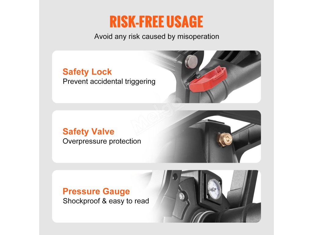 Zažijte optimální pohodlí a ovládání díky ergonomickému designu naší sedadlové pistole. Poskytuje pohodlný úchop, který usnadňuje ovládání sedačky. A konstrukce minimalizuje dopad zpětného rázu, čímž zajišťuje stabilní a bezpečný proces nafukování.