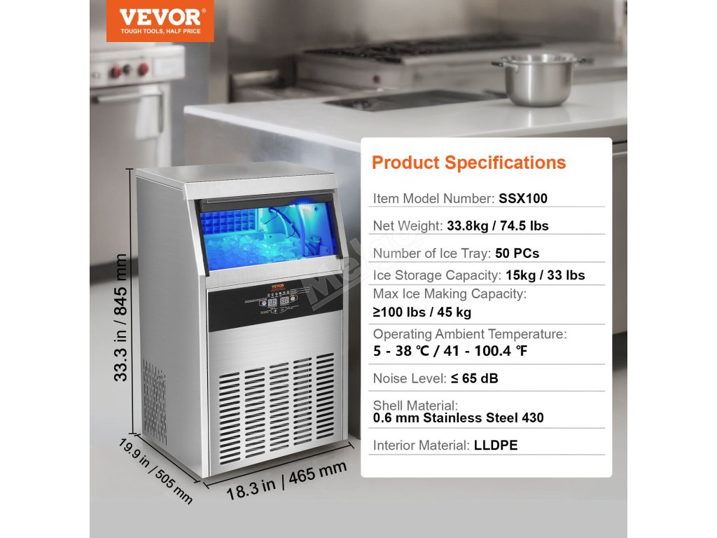 Výrobník ledu 100lbs/24h, 33lbs zásobník, 50 kostek/12-15 min