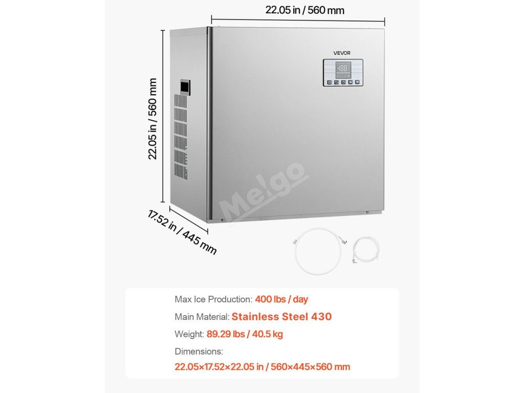 Komerční výrobník ledu má moderní plášť z nerezové oceli, který je odolný proti korozi a rzi, snadno se čistí a je vysoce odolný.