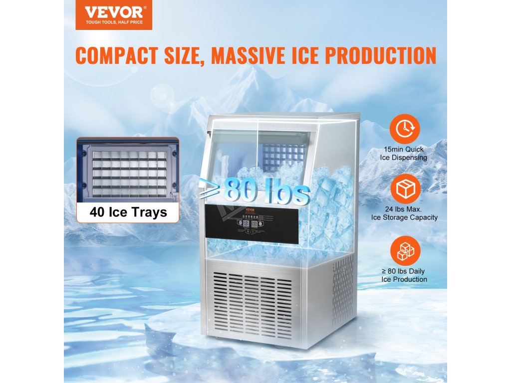 Výrobník ledu 80lbs/24H, zásoba 24lbs, 40 kostek/12–15 min, led