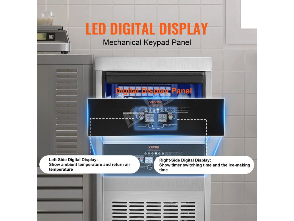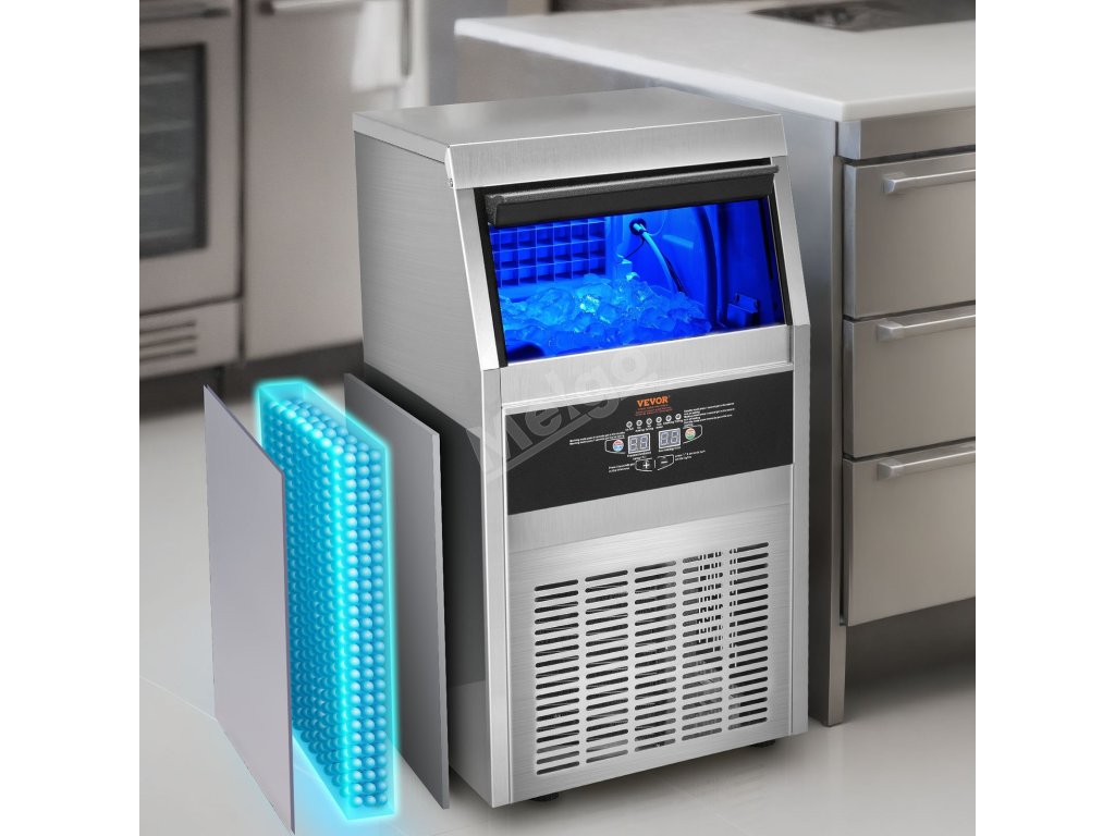 Náš komerční výrobník ledu je vybaven 40 kostkami ledu, které umožňují nastavit tloušťku ledu prodloužením nebo zkrácením doby výroby ledu. Díky výkonnému kompresoru dokáže tento výrobník ledu vyrobit kostky ledu za pouhých 12-15 minut.