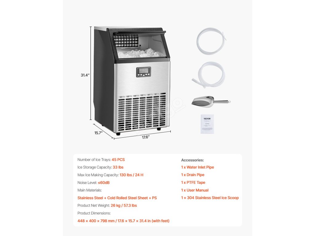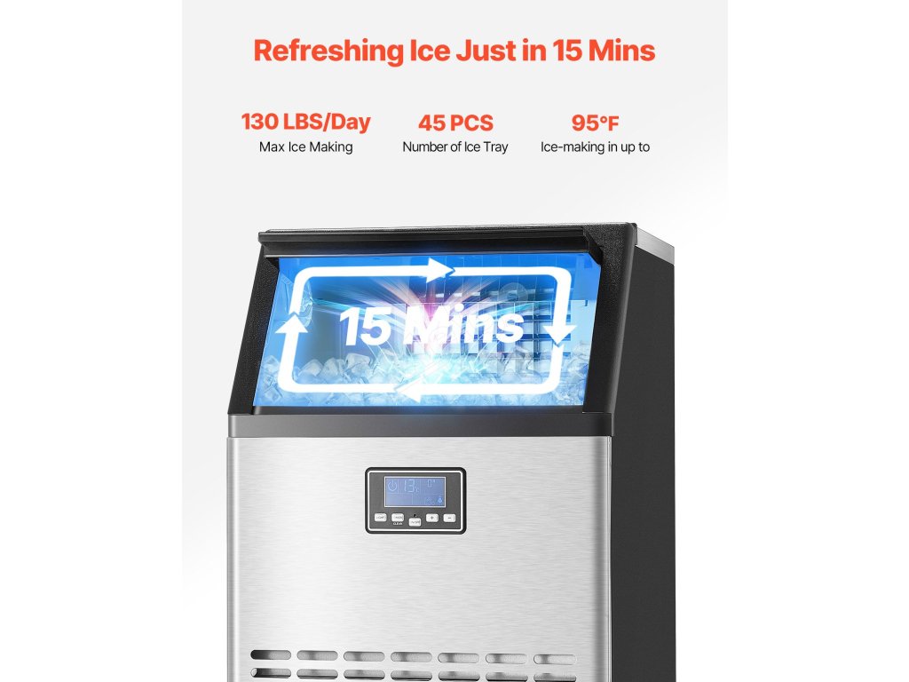 Výrobník ledu volně stojící 130lbs/24H 45 kostek/15 min zásobník 33lbs