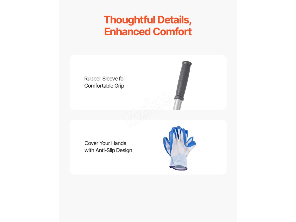 Naše hrábě na vyrovnávání trávníku s širokou zemní deskou účinně vyrovnávají půdu. Slitina nerezové oceli a hliníku s povrchem odolným proti korozi a pevným svařováním pro dlouhodobé používání. Je vybaven 180° otočnou násadou s gumovou objímkou a nastavitelnou délkou a je ideální pro farmy, zahrady, golfová hřiště.