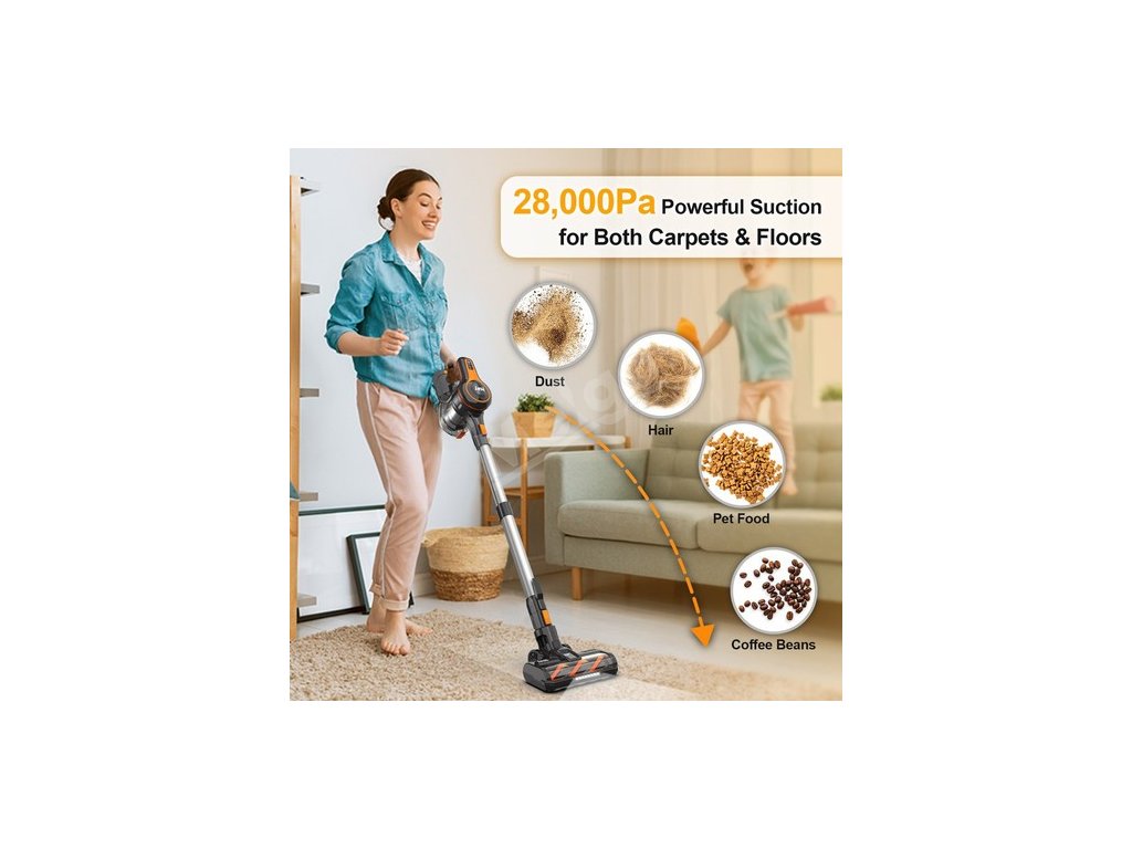 Poradí si se vším od jemného prachu až po odolné nečistoty díky 250W bezkartáčovému motoru, který poskytuje výkonné sání 28 000 Pa. Ideální pro tvrdé podlahy i koberce s nízkým až středním vlasem.