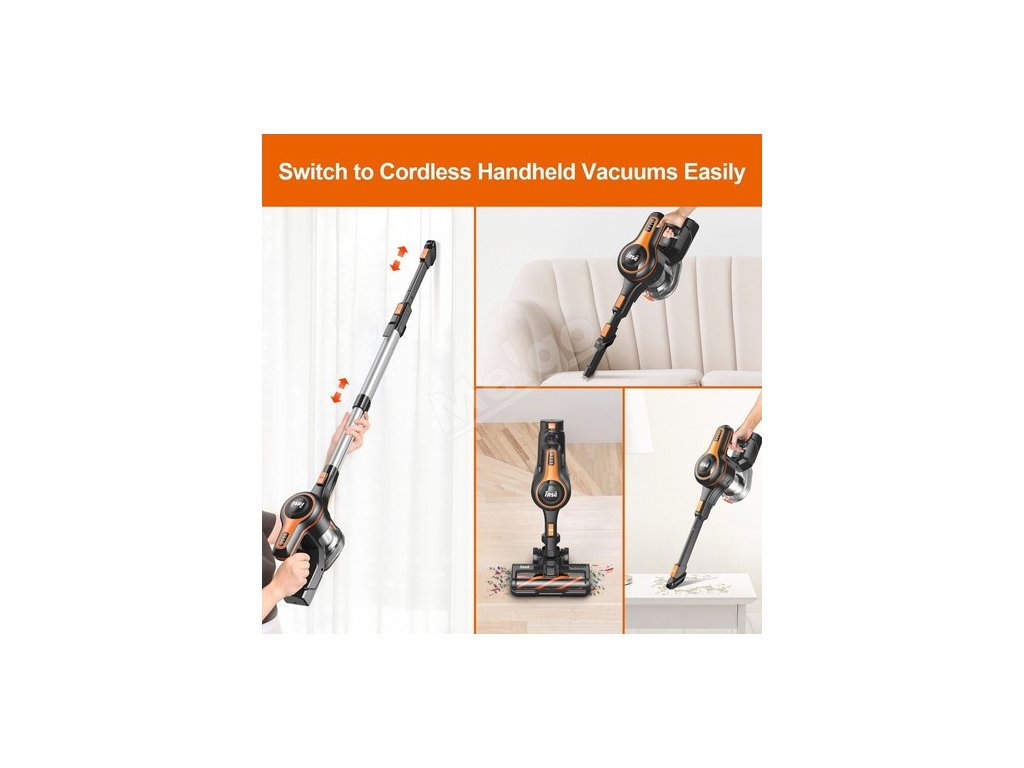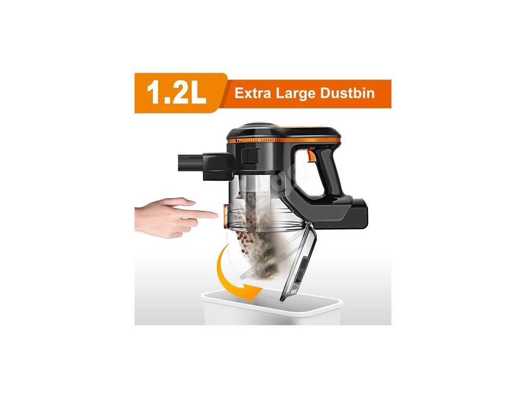 | Specifikace | Výkon: 250 W Napětí: 100-240 V Zástrčka: 100-240 V Sání: 28000Pa Doba nabíjení: 5,5 hodiny Max. doba trvání: 50 minut Extra velká nádoba na prach: 1,2 l Kapacita baterie: 3000 mAh |
