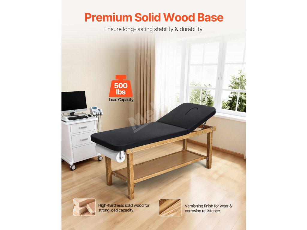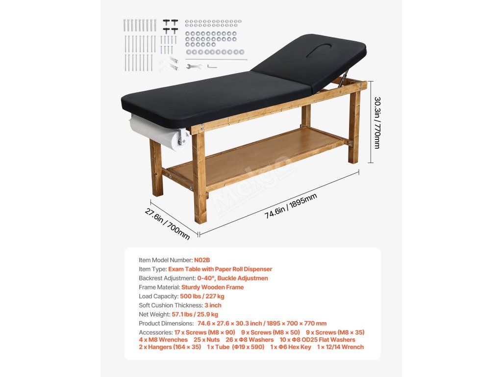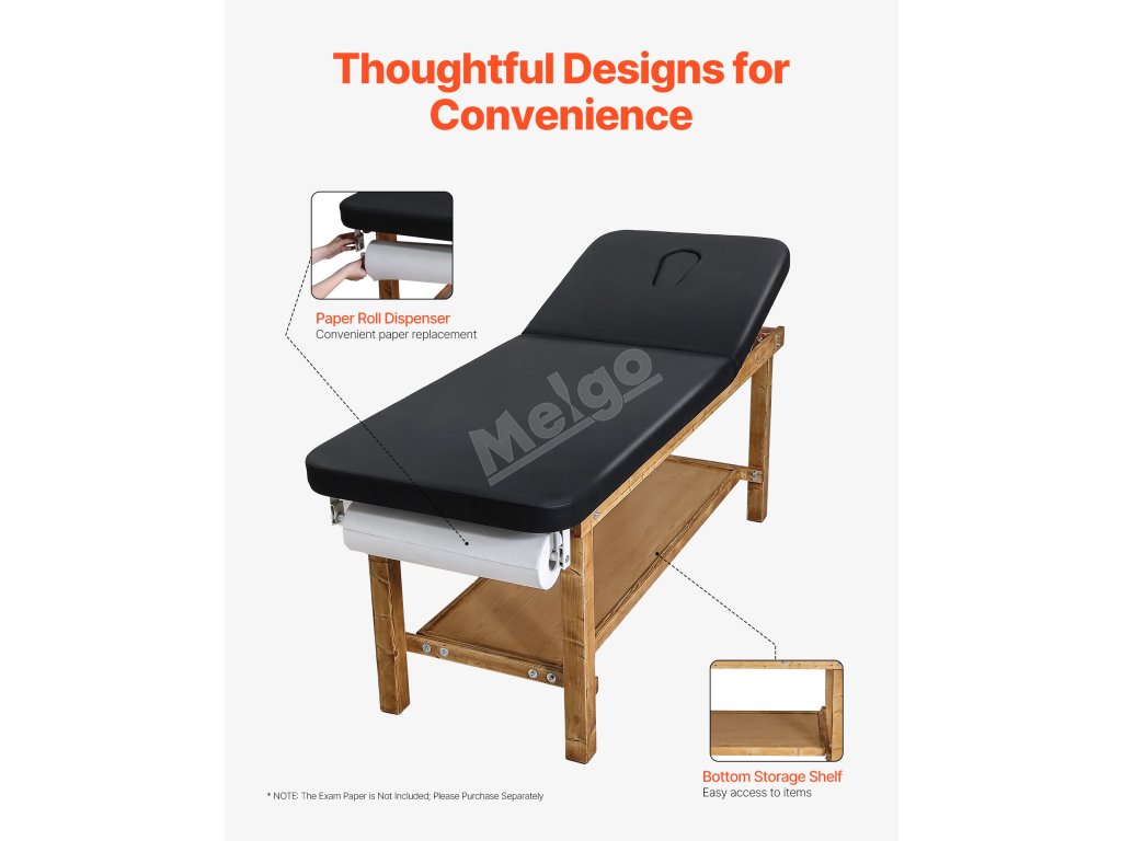 Tento lékařský vyšetřovací stůl má rám z masivního dřeva, 3palcový polštář z pěny s vysokou hustotou a opěradlo nastavitelné v úhlu 0°-40° pro optimální oporu. Spodní odkládací polička a konstrukce držáku na role papíru mu dodávají velké pohodlí, takže je ideální pro kliniky, rehabilitační centra a kosmetická studia.