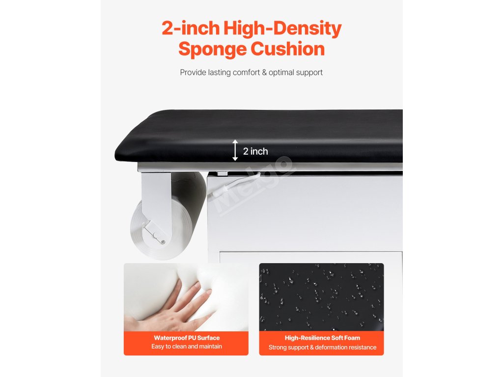 Naše lékařské vyšetřovací lůžko je vybaveno 2palcovým polštářem z pružné pěny. Poskytuje výjimečnou oporu a pohodlí během vyšetření a voděodolný PU povrch je voděodolný a snadno se čistí, což umožňuje bezproblémovou údržbu.