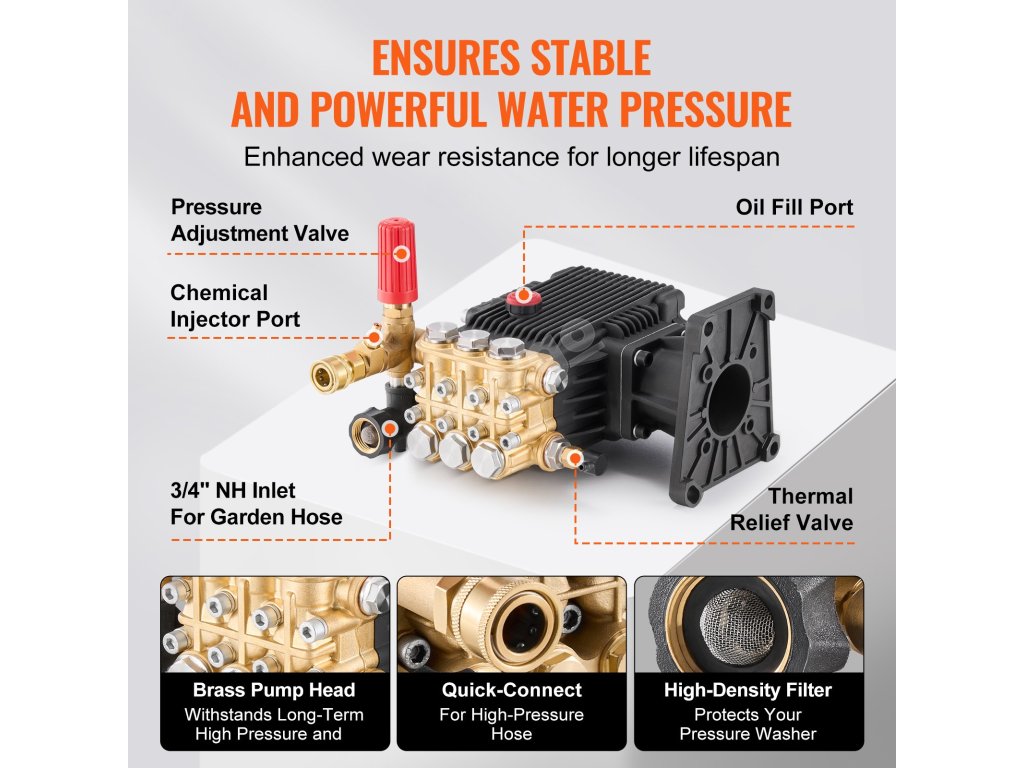 Toto vylepšené čerpadlo pro myčky dílů s trojitým pístem nabízí stabilnější a silnější tlakový výkon ve srovnání s tradičními čerpadly s jedním nebo dvěma písty. Každý zdvih čerpadla poskytuje konzistentní výkon, čímž se snižuje kolísání tlaku pro účinnější a efektivnější čištění.