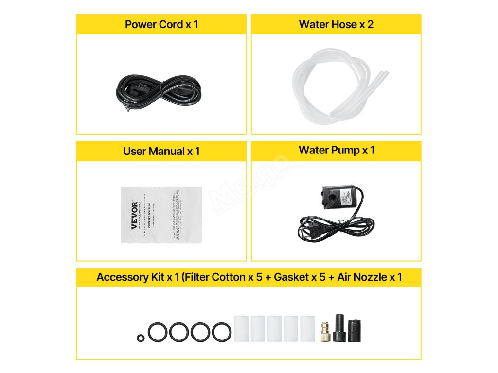 - Poznámka: Mazací olej (0,4 l ISO VG46) a nádržku na vodu (používanou pro chladicí systém) je třeba zakoupit zvlášť.