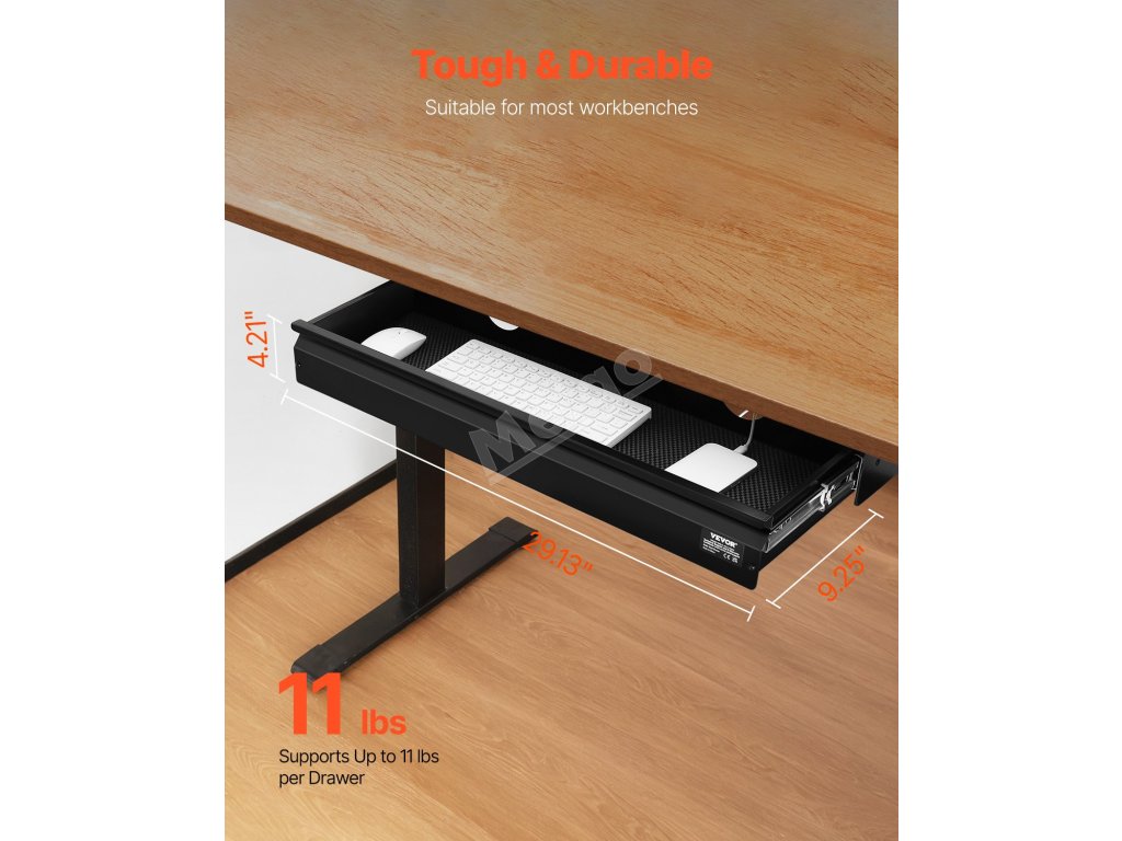 Tato 26palcová zásuvka pod stolem slouží jako zásuvka i jako přihrádka na klávesnici. Díky výšce pouhých 3,2 palce poskytuje další úložný prostor, aniž by byl ohrožen prostor pro nohy. Udržujte svůj stůl uklizený a efektivní a zároveň mějte dostatek prostoru pro pohodlný pohyb pod stolem.