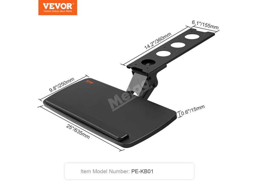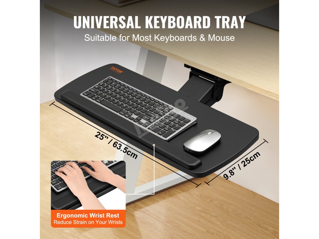 Výsuvný držák klávesnice, nastavitelná výška a úhel, 25×9.8 inch