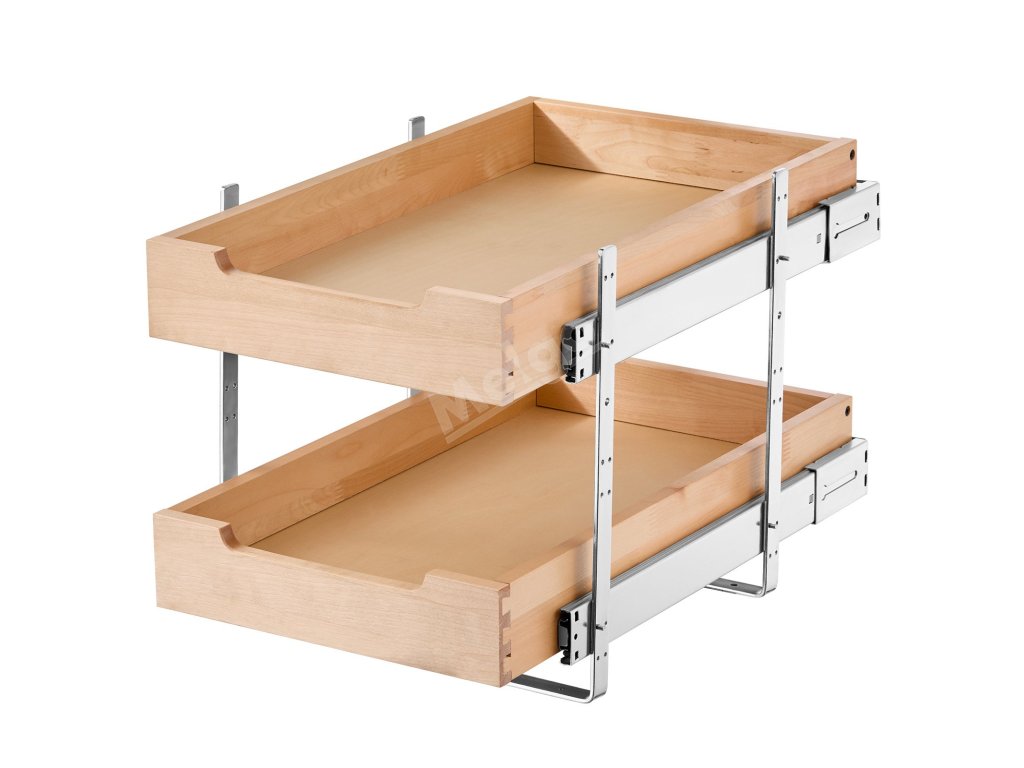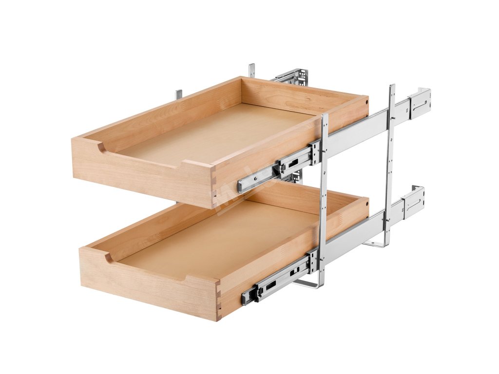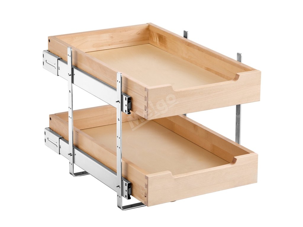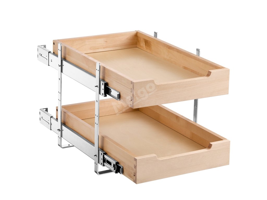 Výsuvný dvoupatrový organizér do skříňky 14"×21", tlumené dovírání