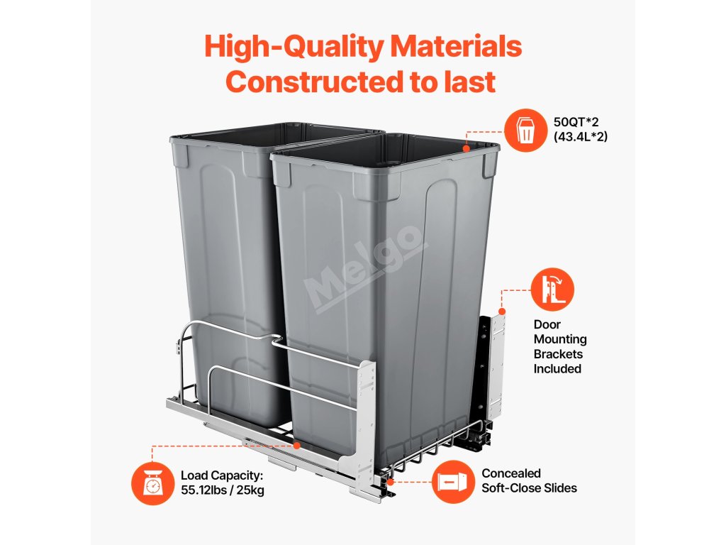 Výsuvný odpadkový koš 50 QT×2 do skříňky s montáží na dveře a tlumením