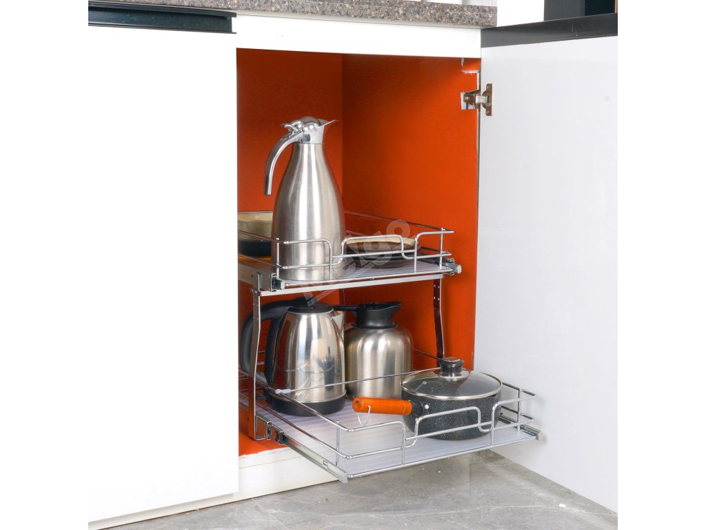 Výsuvný organizér do skříňky 2 patra 41×53.3 cm chromovaná ocel
