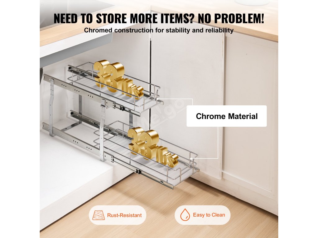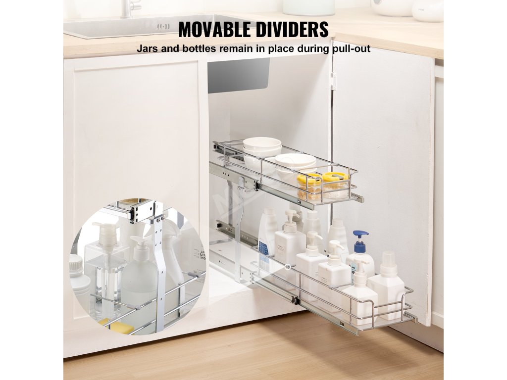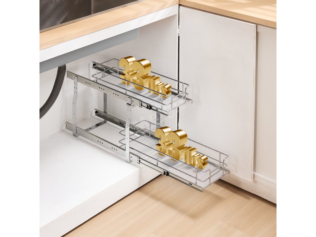 Dvouvrstvá konstrukce maximalizuje každý centimetr prostoru, zdvojnásobuje úložnou kapacitu kuchyně a zároveň ji udržuje přehlednou a organizovanou. Obě vrstvy lze nezávisle na sobě vysunout pro snadný přístup k položkám, což zvyšuje pohodlí.
