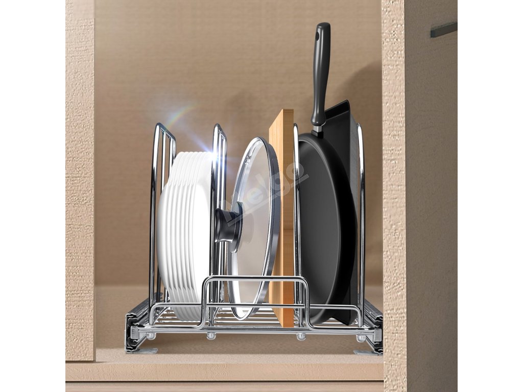 Trápí vás nepořádek ve skříních a obáváte se, že vám při jejich otevírání vypadnou hrnce a pánve? Náš stojan na pánve vám pomůže vytvořit více místa a usnadní přístup k hrncům, pánvím a poklicím.