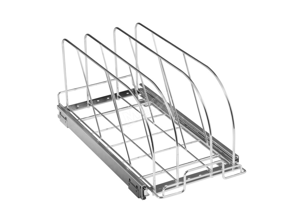 Výsuvný organizér na pánve a poklice, nastavitelné příčky, ocel