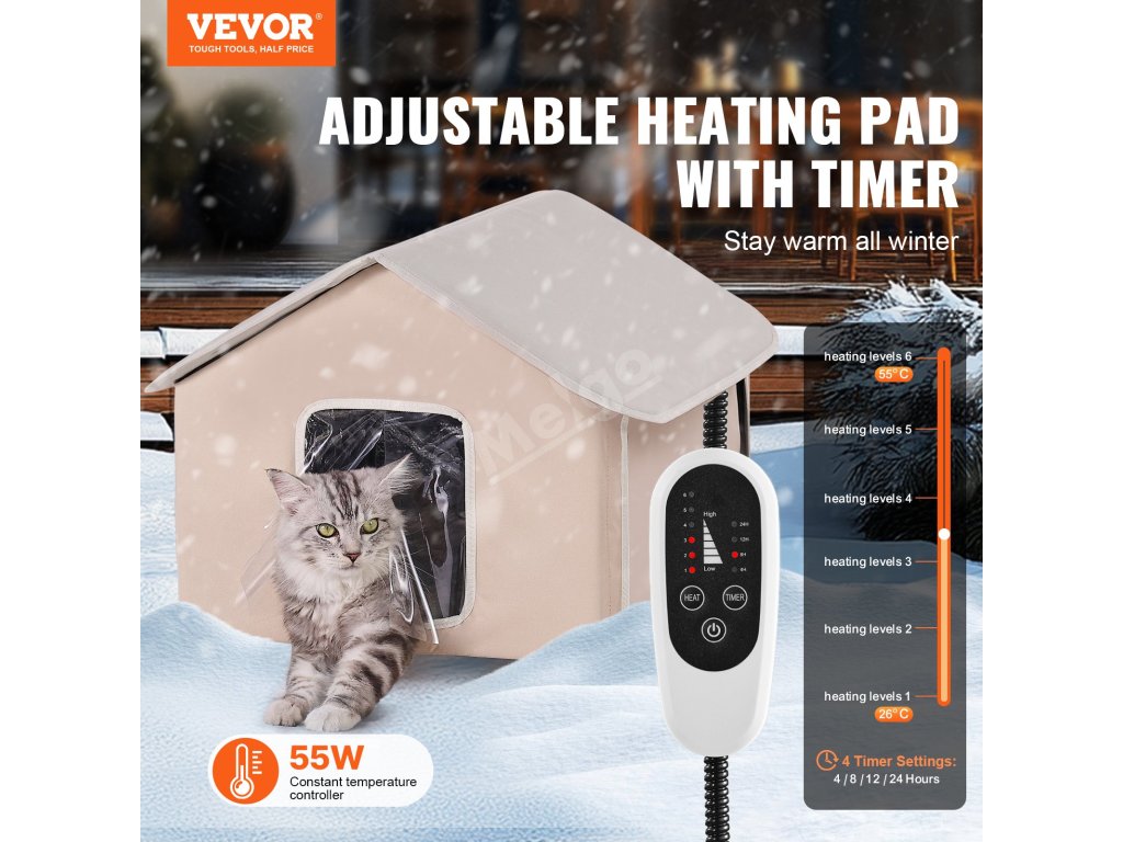 Vyvýšený ohřívaný domeček pro kočky, s vyhřívanou podložkou, 600D