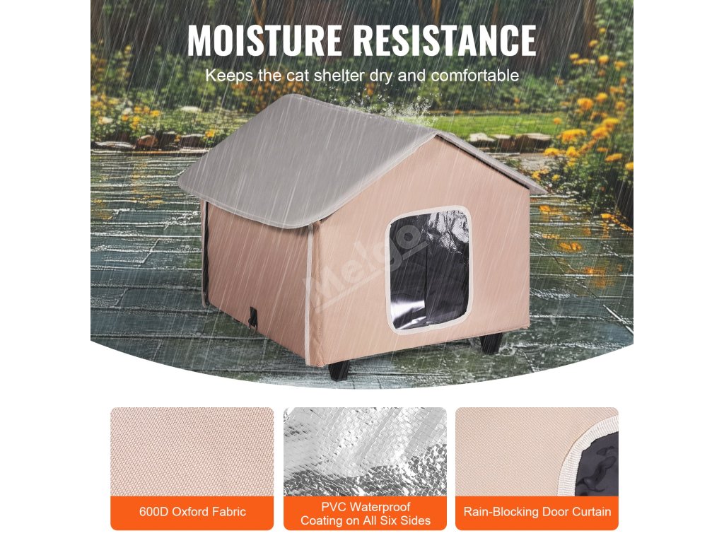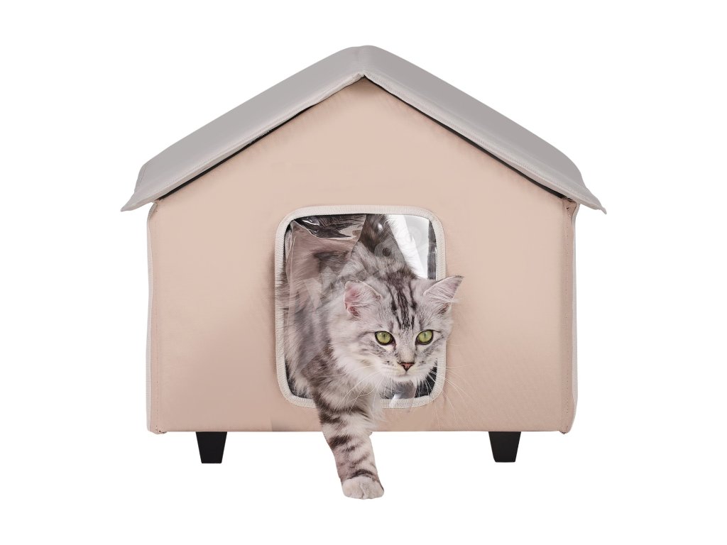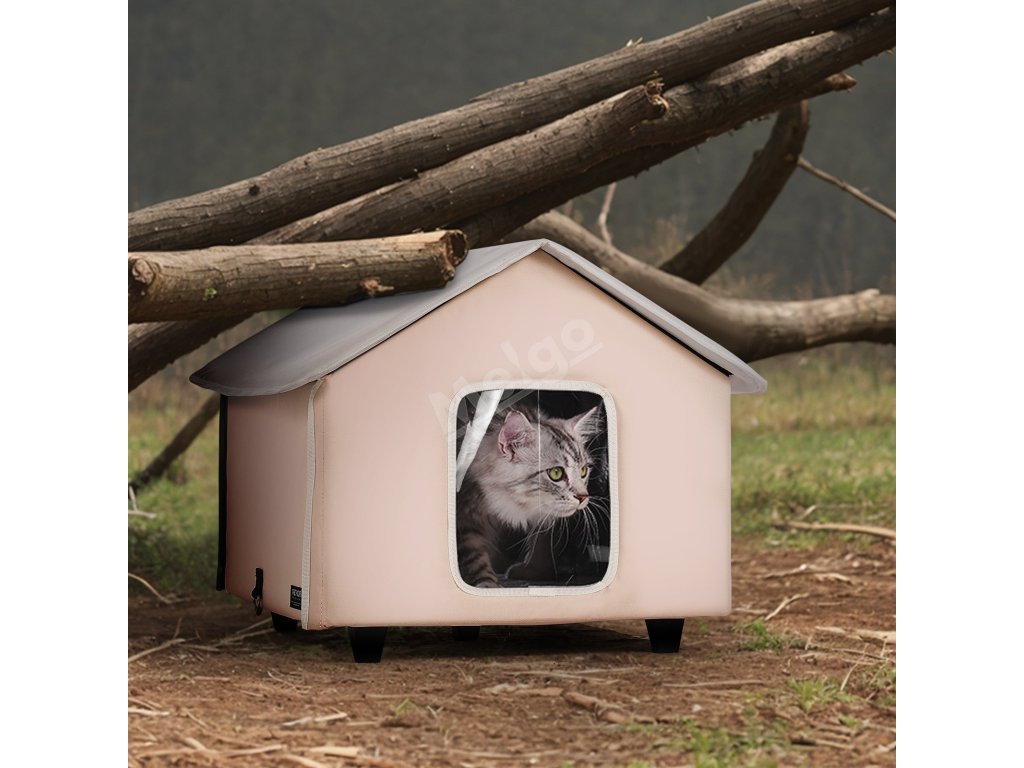 Díky 4 vrstvám materiálů poskytuje přístřešek kočce skvělou ochranu před měnícím se počasím. Vnější vrstva se skládá z voděodolného PVC povlaku a tkaniny 600D Oxford, která zabraňuje pronikání dešťové vody, zatímco vnitřní vrstva zvyšuje izolaci silnou perleťovou bavlnou a hliníkovou fólií.