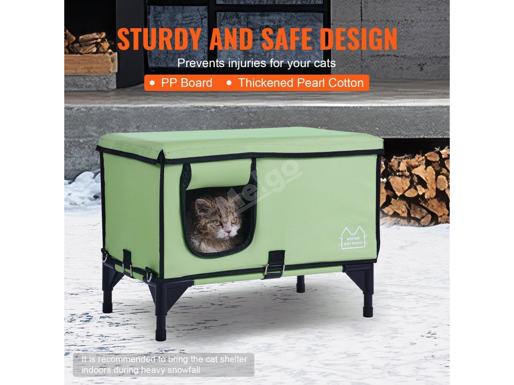 Tento vyhřívaný přístřešek pro kočky je vybaven 30W vyhřívací podložkou s regulací teploty v rozmezí 40-60 ℃ (104-140℉), která zajistí, že vaše kočka zůstane v teple i za chladného počasí. Inteligentní termostat zajišťuje nepřetržité teplo a obsahuje ochranu proti přehřátí a nadproudu, aby vaše kočka mohla klidně spát.