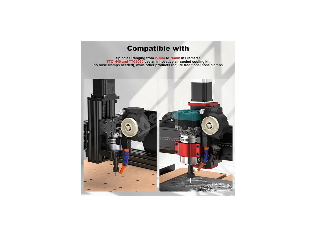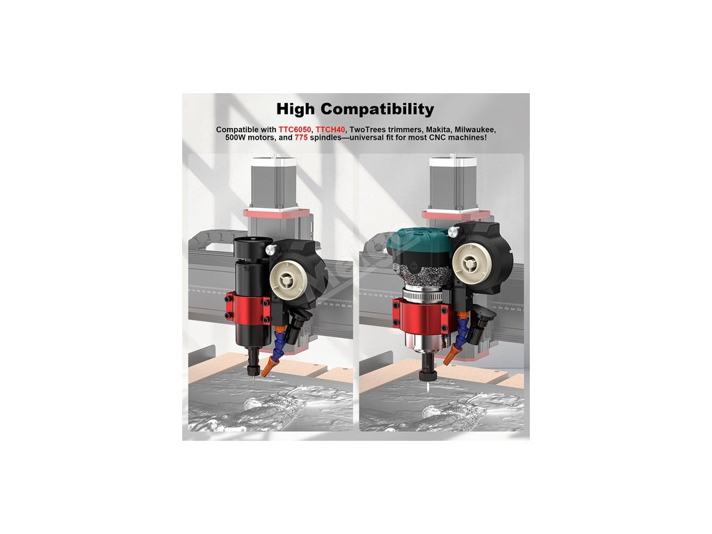500W vysoce výkonné motory, vhodné pro širokou škálu stolních CNC strojů s průměrem vřetena od 27 mm do 76 mm. Kompatibilní s CNC frézkami Twotress TTC6050/TTCH40, vřetenovými motory Makita, Milwaukee, 775 a dalšími.