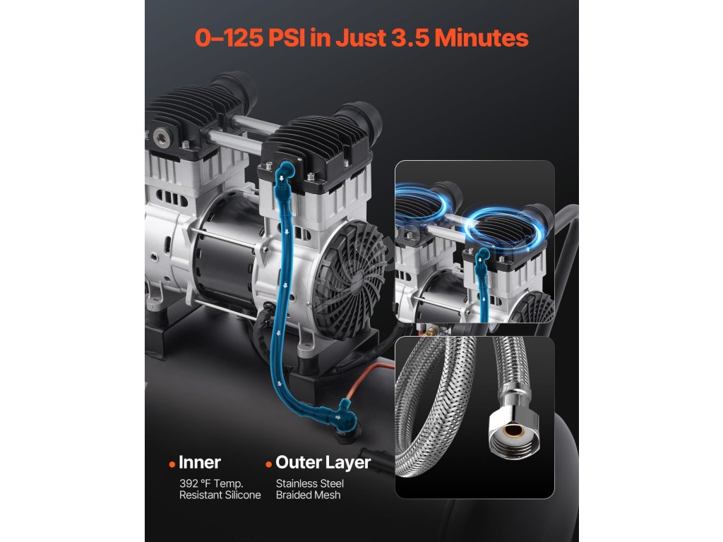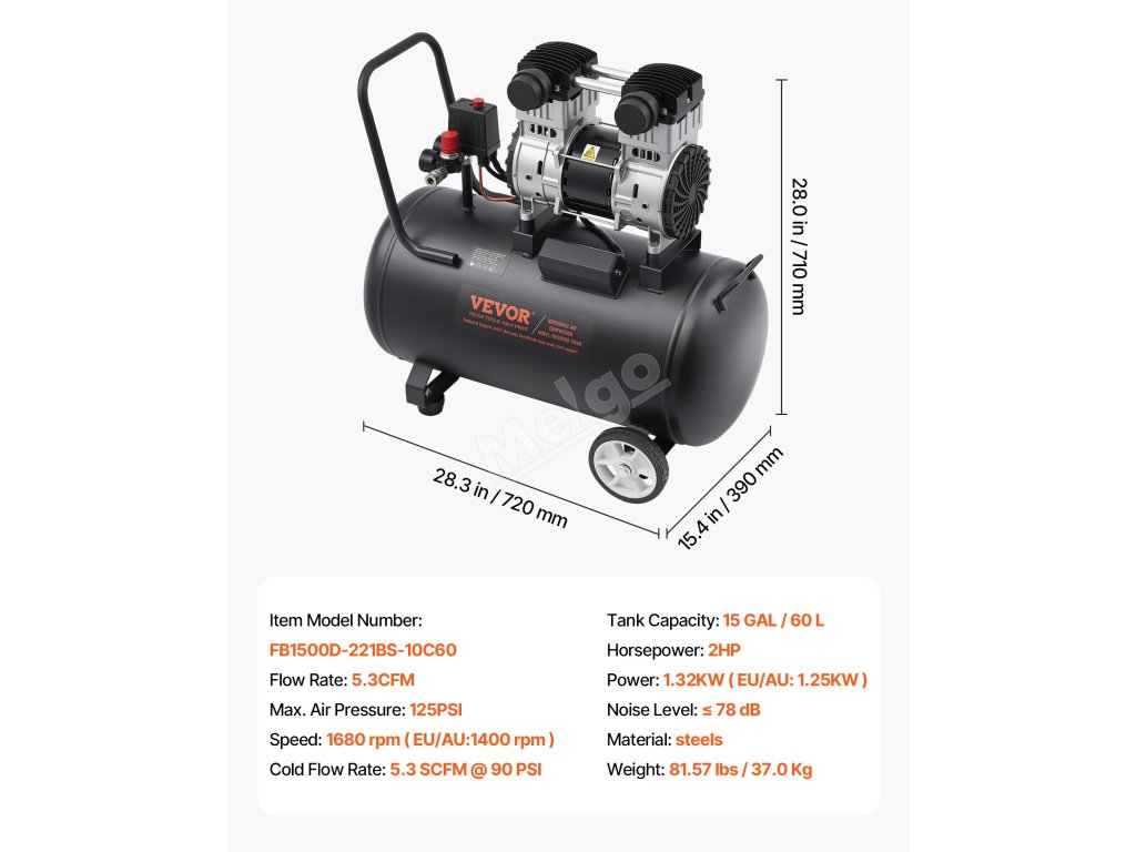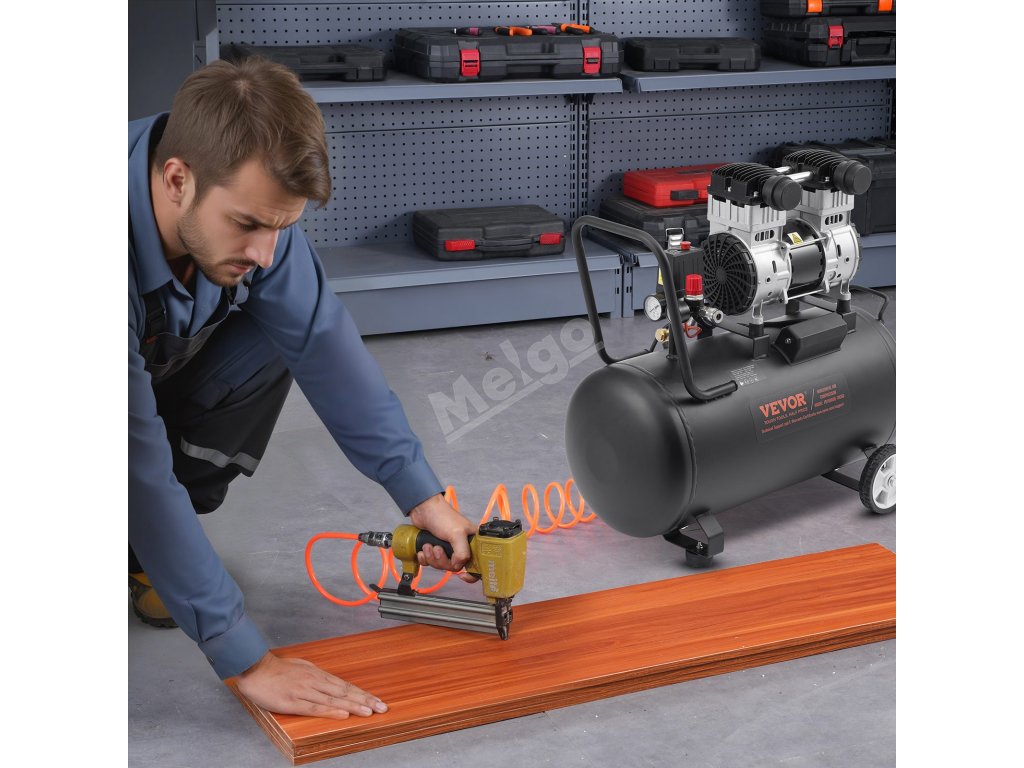 Tento horizontální vzduchový kompresor má bezolejový motor o výkonu 2 HP, který poskytuje dostatečný výkon pro splnění požadavků různých pneumatických nástrojů. Nabízí dostatečnou podporu vzduchu a výkon pro zatloukání hřebíků, lakování a další aplikace.