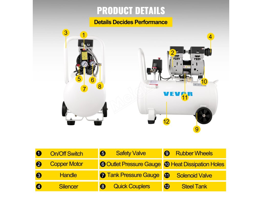 Tento kompresor používá měděný motor o výkonu 1 HP/750 W, který je vysoce účinný a tichý, ventilační otvor pro odvod tepla je navržen tak, aby se zabránilo přehřátí, tlak: 115 psi, rychlost otáčení: 1450 ot. min-1, rychlost: 1450 ot. min-1, tlak: 115 psi, rychlost otáčení: 1450 ot. min-1, tlak: 115 psi, rychlost otáčení: 1450 ot. min-1, rychlost otáčení: 1450 ot. min-1, rychlost otáčení: 1450 ot. min-1, rychlost otáčení: 1450 ot. min-1.