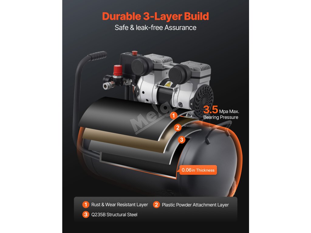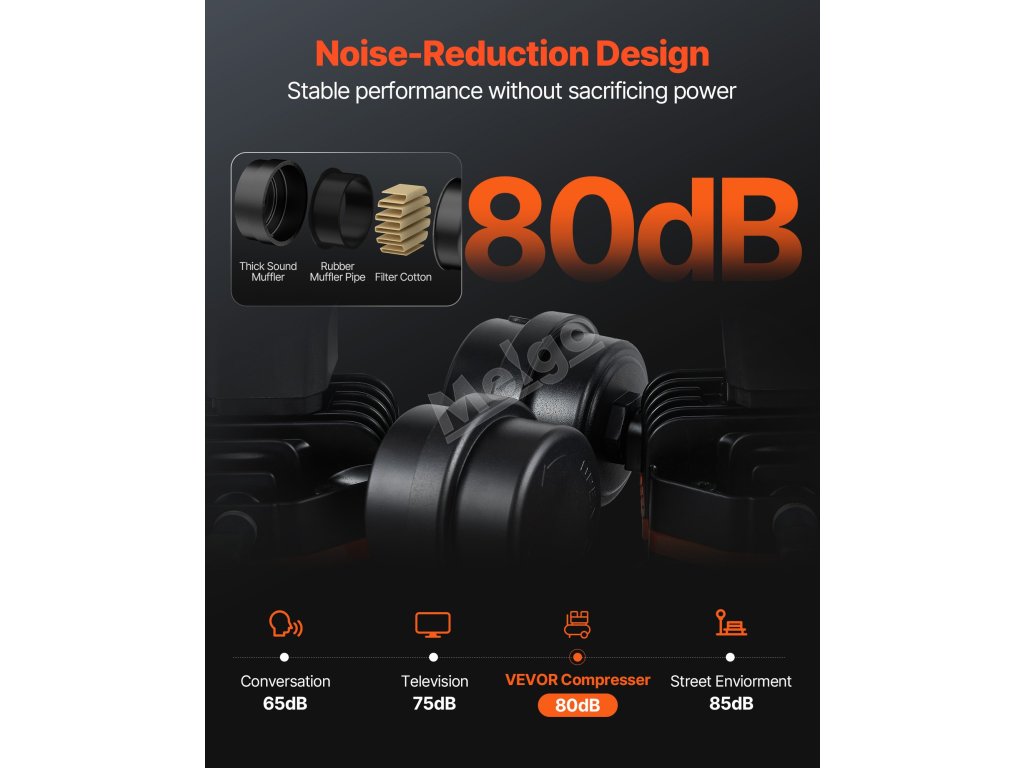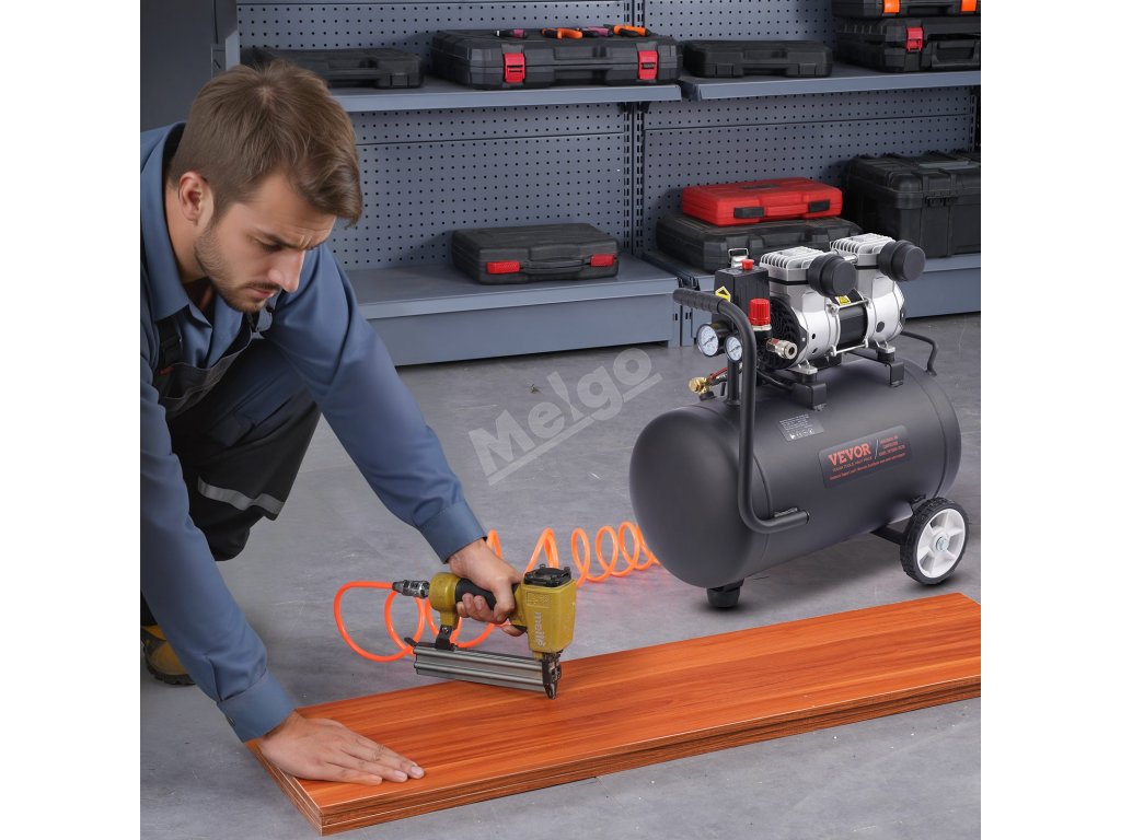 Tento horizontální vzduchový kompresor má bezolejový motor o výkonu 1 HP, který poskytuje dostatečný výkon pro splnění požadavků různých pneumatických nástrojů. Nabízí dostatečnou podporu vzduchu a výkon pro zatloukání hřebíků, lakování a další aplikace.