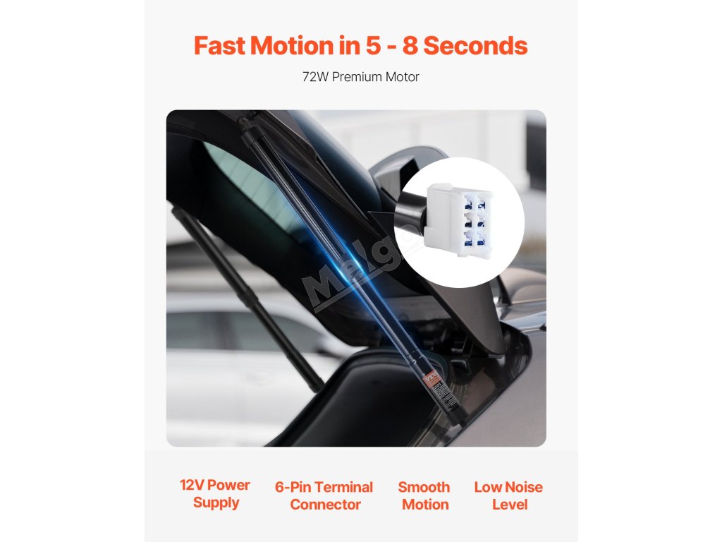 S naším robustním pohonem zadních dveří 715N, který poskytuje výkonnou a účinnou podporu pro bezproblémový provoz, zvednete nebo zavřete zadní dveře bez námahy za pouhých 5 až 8 sekund.