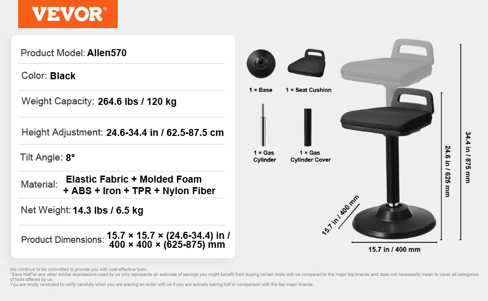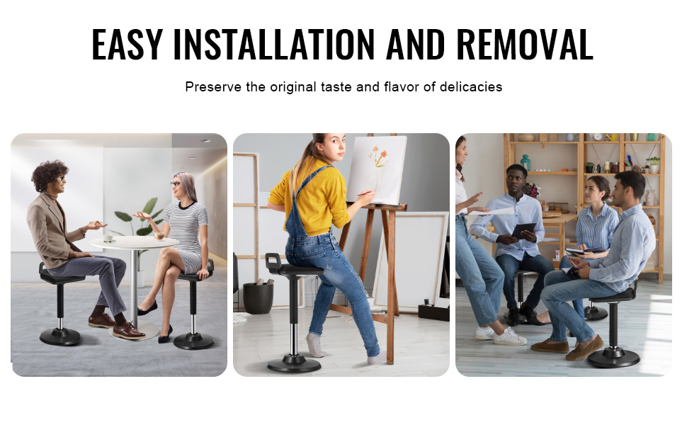 Židle je otočná o 360°, což umožňuje větší rozsah pohybu. Díky nastavitelné výšce od 24,6 do 34,4 palce se hodí ke standardním i stojícím stolům a umožňuje snadný přechod mezi sezením a odpočinkem.