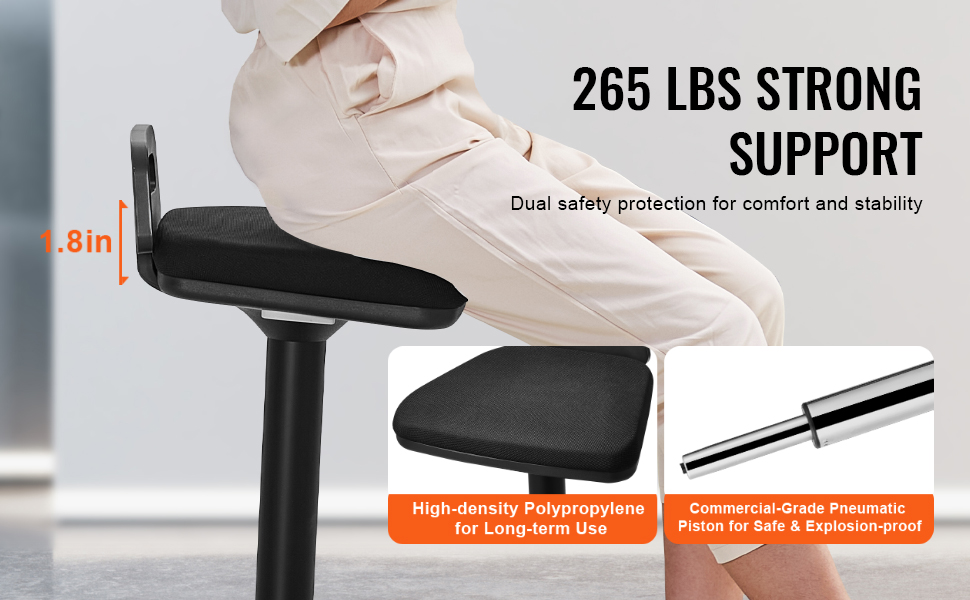 Unese až 264,6 kg a je vybavena pružným polštářem s vysokou hustotou, který si zachovává svůj tvar i při dlouhodobém používání. Pneumatický píst komerční třídy zajišťuje stabilitu a bezpečnost i při častém houpání.