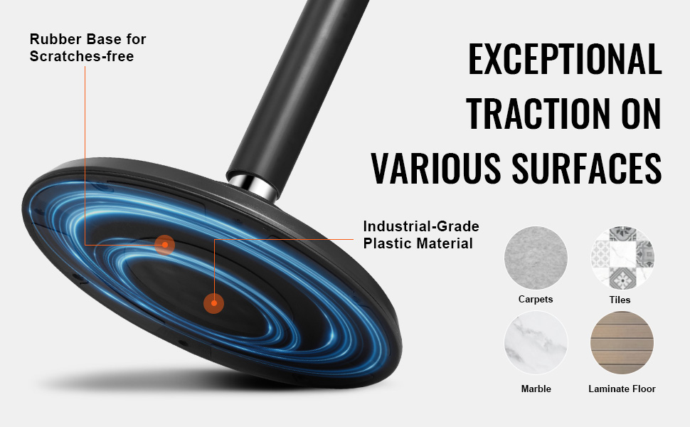 Velká, robustní základna má protiskluzovou strukturu, která zabraňuje uklouznutí, a pogumovaný povrch chrání podlahu před poškrábáním.