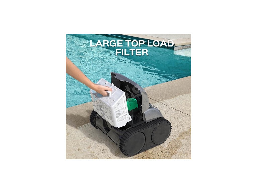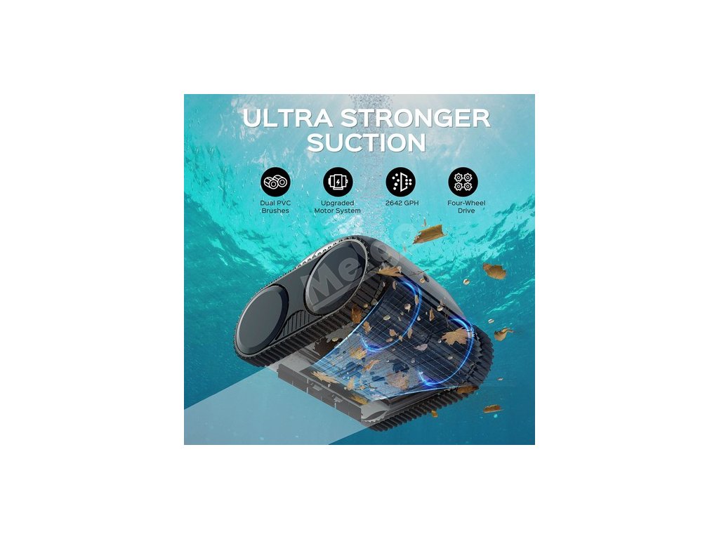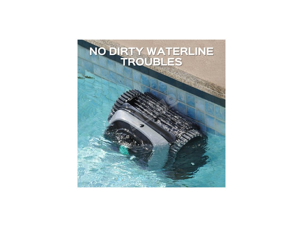 Je vybaven vylepšeným nezávislým motorem vodního čerpadla, který dosahuje maximální rychlosti filtrace 2642 GPH, dvěma silnými PVC kartáči, které dokáží důkladně a účinně zaútočit na různé nečistoty, odpadky jako písek, listí a odolné nečistoty ze VŠECH povrchů bazénu. Zajištění důkladně čistého a křišťálově průzračného bazénu vám poskytne osvěžující zážitek z koupání.