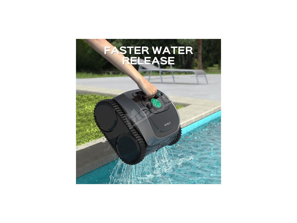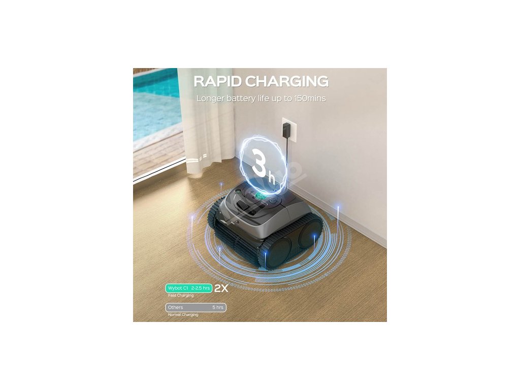 Bazénový vysavač se může pochlubit dlouhou výdrží baterie, která zajistí až 150 minut nepřetržitého provozu. Jeho rychlonabíjení navíc zajišťuje, že je připraven k dalšímu čištění přibližně za 3 hodiny. Tento inovativní robotický bazénový vysavač je určen pro zapuštěné bazény o rozloze až 1 615 čtverečních stop a hloubce vody 13 stop.